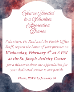 Our mission is to joyfully serve all people, spiritually and physically, by loving God and living out our Catholic Faith.