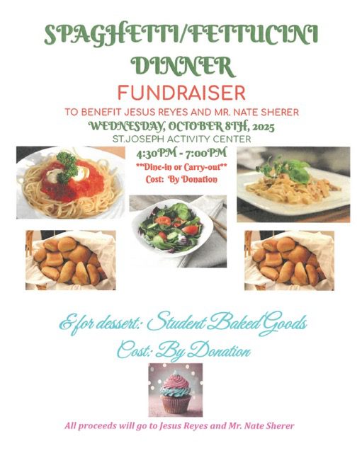 There are several ways you can join us in supporting our first grader, Jesus Reyes & our beloved musician, Nate Sherer, who are both battling leukemia. We are planning a Pasta Dinner October 8 at the St. Joseph Activity Center, which will be a free-will donation. We are selling supportive t-shirts with proceeds going to the families, and there will be a 2nd collection during Mass on Sunday, October 5.